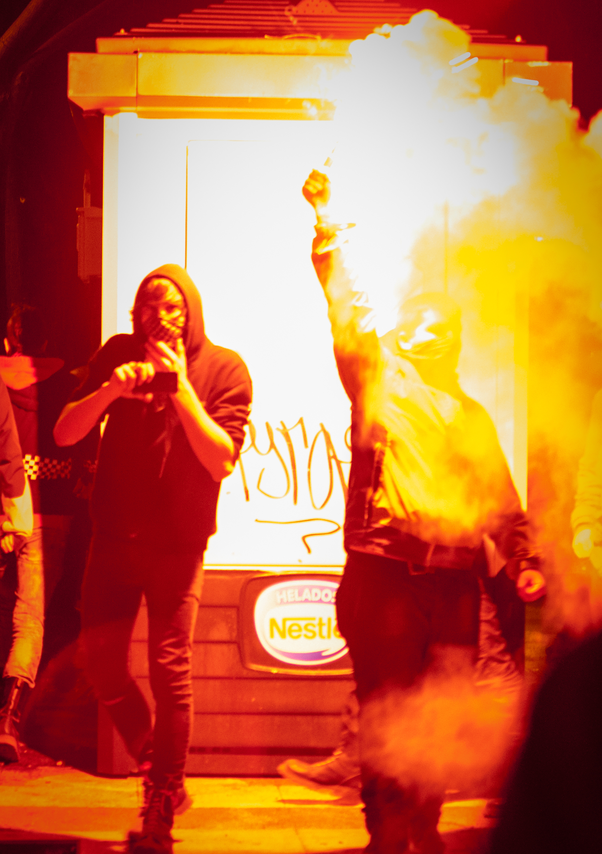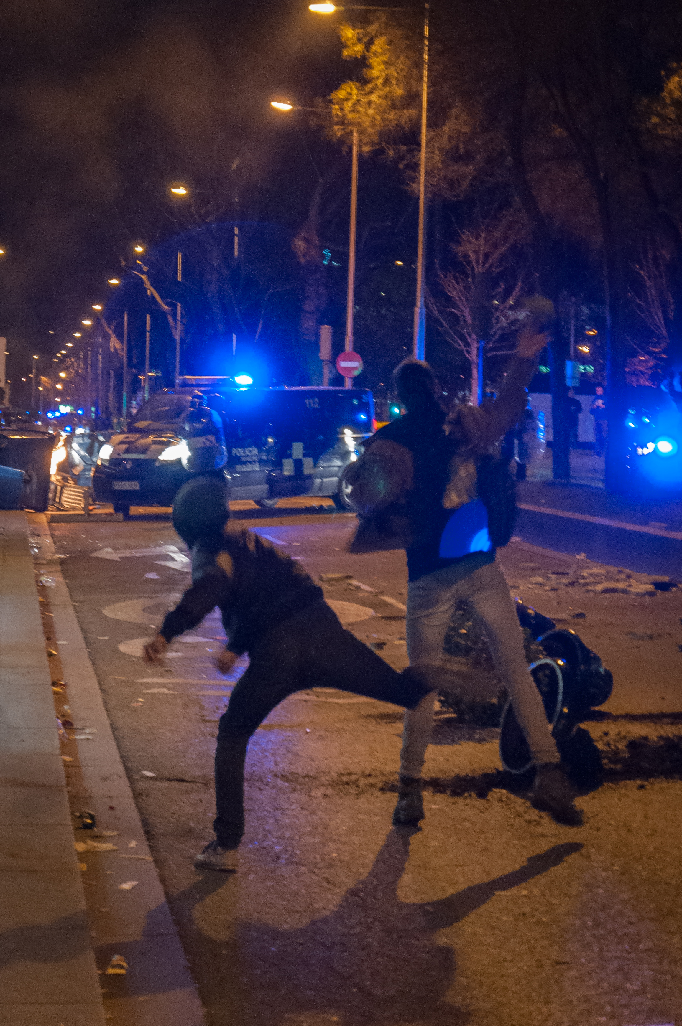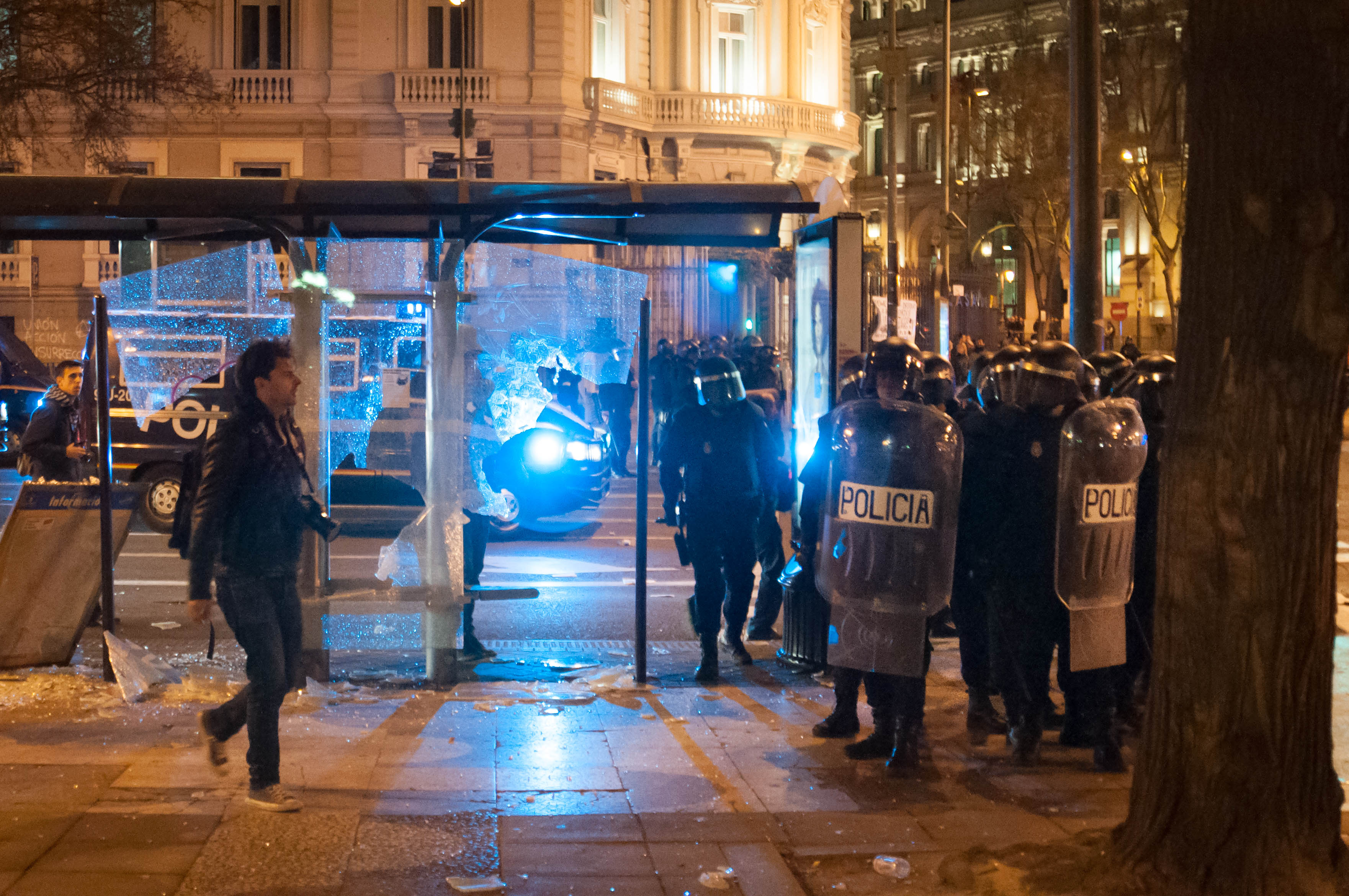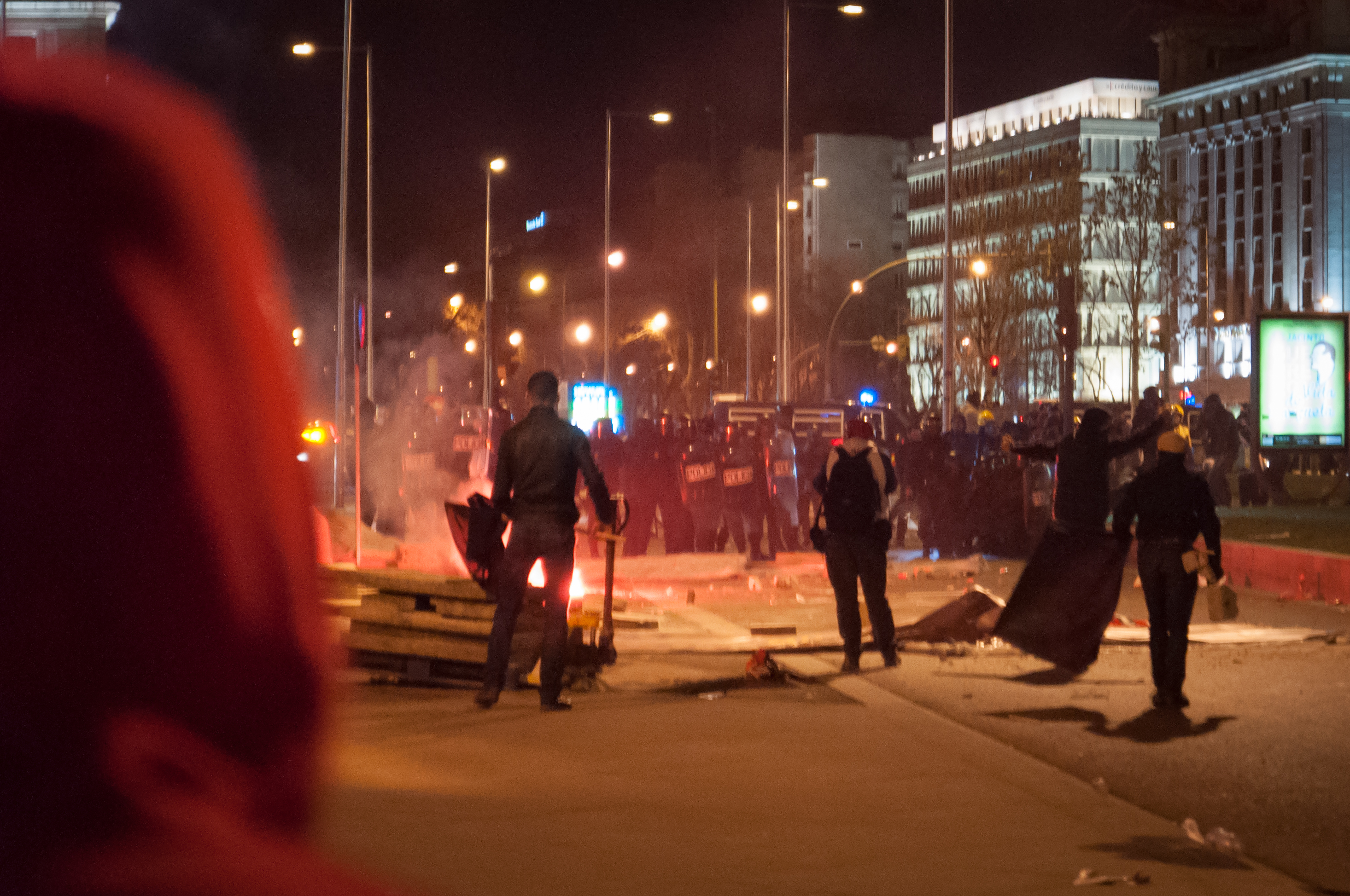 Y al final de la Marcha, las pelotas de goma y los porrazos en una plaza llena. Un fotógrafo cae al suelo. A un chaval se lo llevan herido en volandas. Gritos de caos. Y si no merece mucho espacio en esta crónica, aunque sí que hay muchas fotografías, es porque los medios de comunicación ya han trillado bien ese campo.