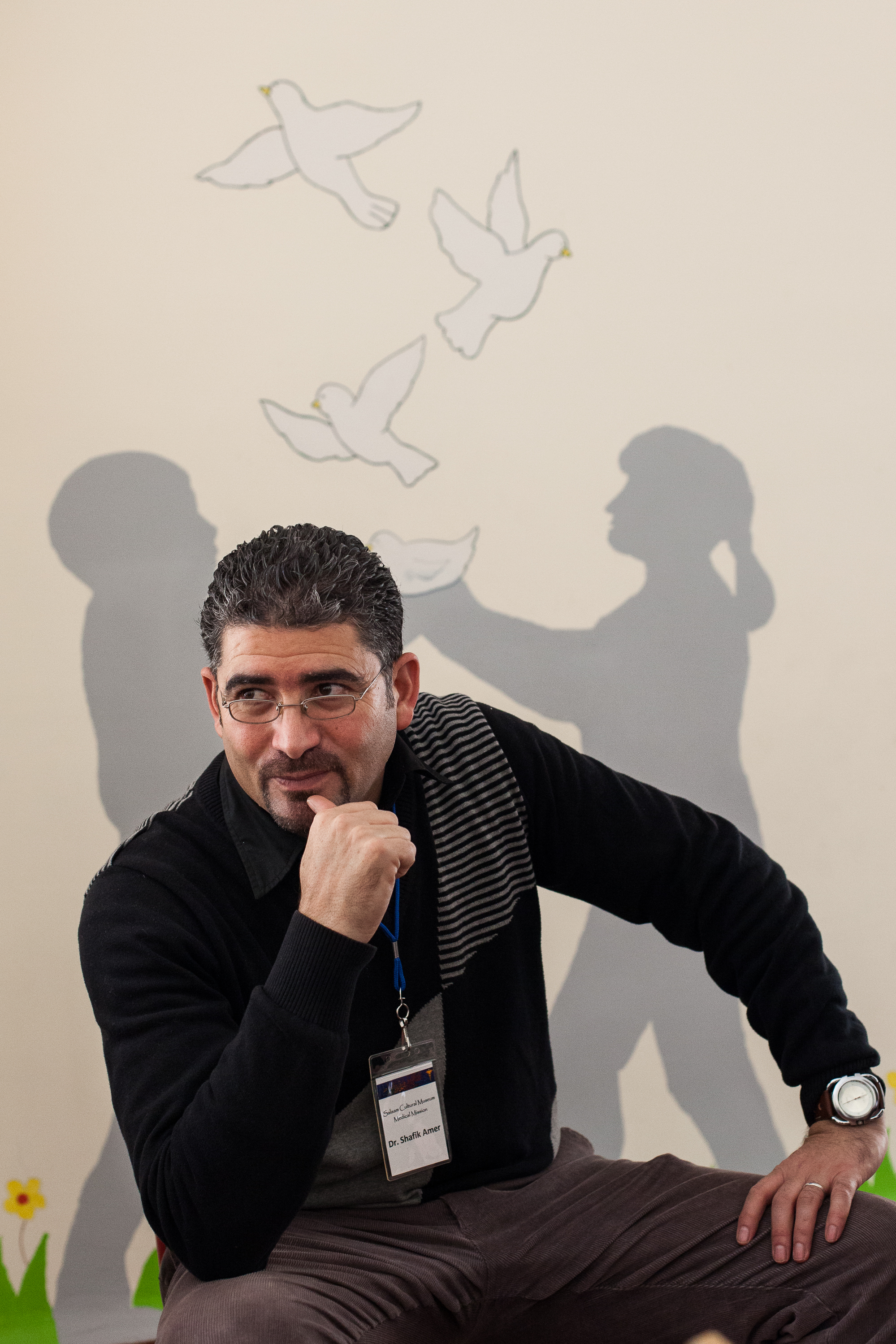 El doctor Shafik Amer lee la letra de una canción: “Vuelan los pájaros sobre los tejados de nuestras casas, volvieron los días de la primavera”. Está escrita en la pared de su centro de psicología infantil de Amán, Jordania. La vivienda está ahora en silencio y el jardín, vacío, porque los niños se han ido al colegio.