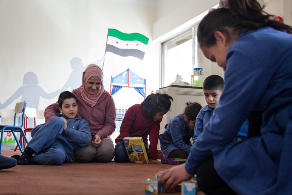 Hasta hace un momento, en el salón había un corro de refugiados sirios de entre 6 y 11 años. En el centro, una chica componía con dificultad un puzle con nueve cubos de madera. “Hacemos este juego para mejorar la concentración cuando tienen estrés postraumático”, explica Amer. “La mayoría sufre de depresión, pesadillas, agorafobia y otras patologías mentales”, añade.